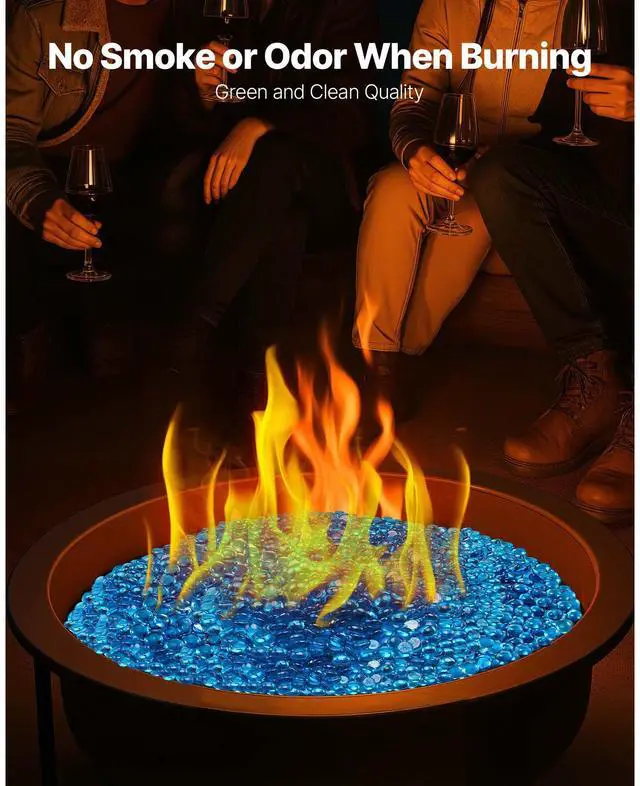 10 LBS Fire Glass 3/4-Inch Fireplace Glass Rocks for Fire Pit Caribbean Blue