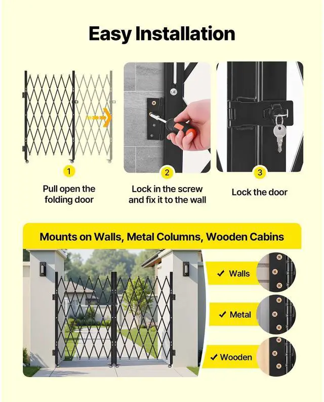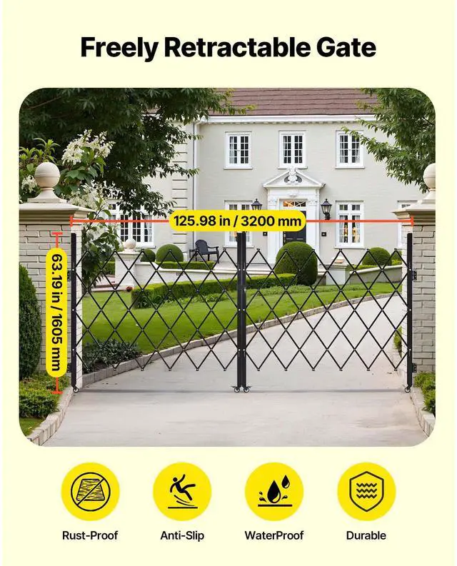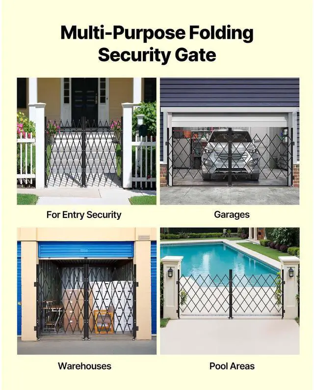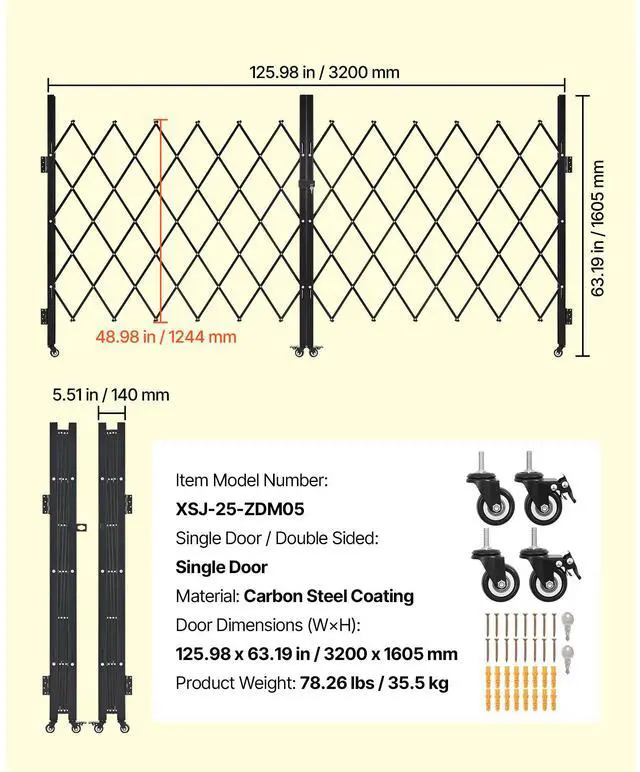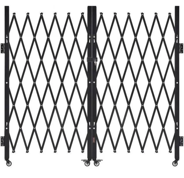 VEVOR Double Folding Security Gate, Lockable Scissor Gate with 360° Swivel Casters, Outdoor Barricade Steel Retractable Gates, for Entry Security, Garage, Warehouse & Pool, 125.98 x 63.19 in (W x H)