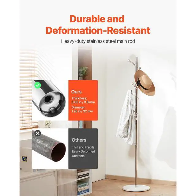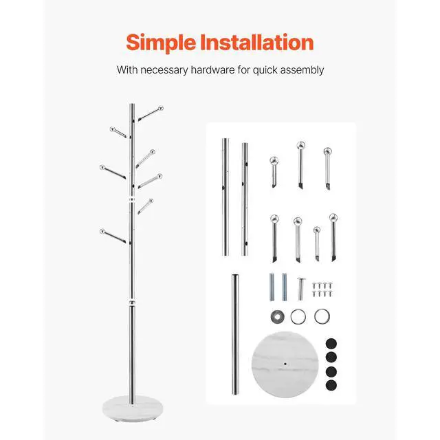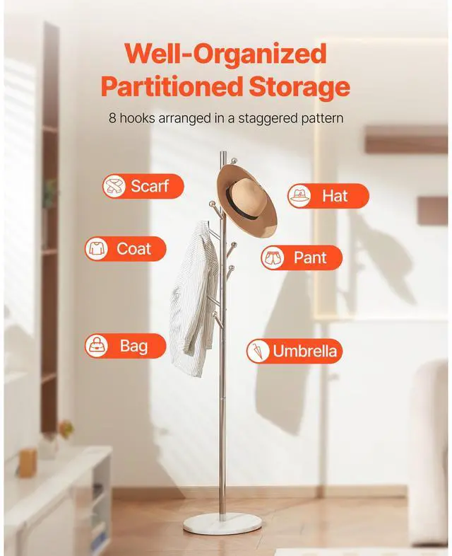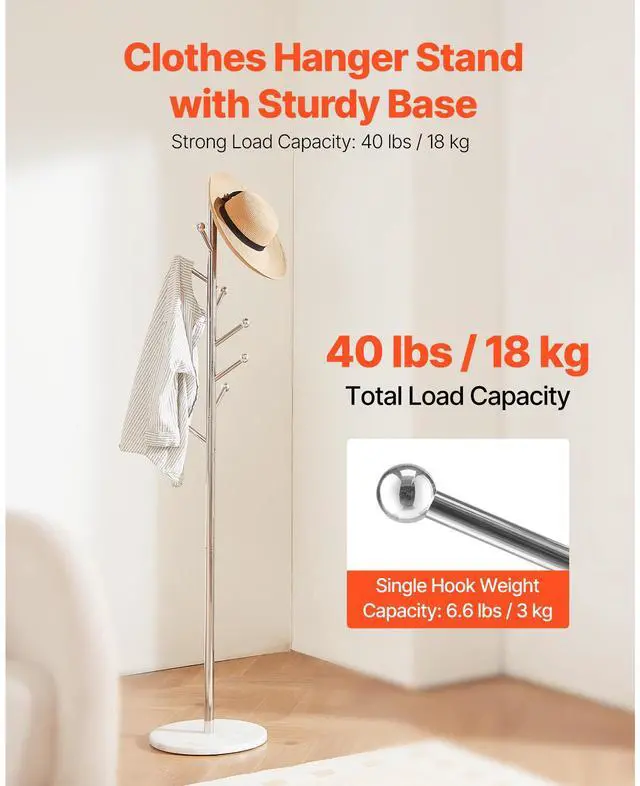 VEVOR Coat Rack Freestanding Coats Rack Stand with Stable Marble Base & 8 Hooks