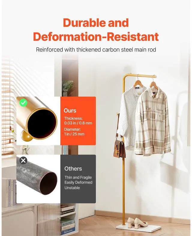 Shape: 7-Shaped Design,Tube Wall Thickness: 0.03 in / 0.8 mm,Base Thickness: 0.6-0.8 in / 15-20 mm ,Total Load Capacity: 22 lbs / 10 kg,Product Dimensions: 17.7 x 9.84 x 66.93 in / 450 x 250 x 1700 mm,Single Hook Weight Capacity: 6.6 lbs / 3 kg,Item Model Number: GH-L619,Base Dimensions: 17.7 x 9.84 in / 450 x 250 mm ,Number of Hooks: 3,Net Weight: 14.66 lbs / 6.65 kg,Main Material: Carbon Steel,Base Material: White Quartz Stone,Tube Diameter: 1 in / 25 mm