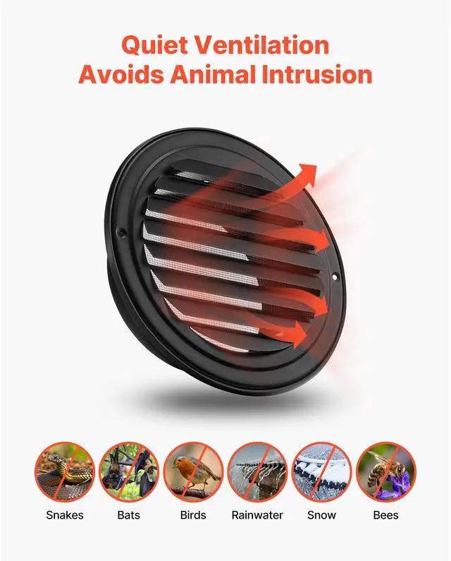 6 Inch Round Wall Vent Cover Stainless Steel AC Vent 2 Pack Black