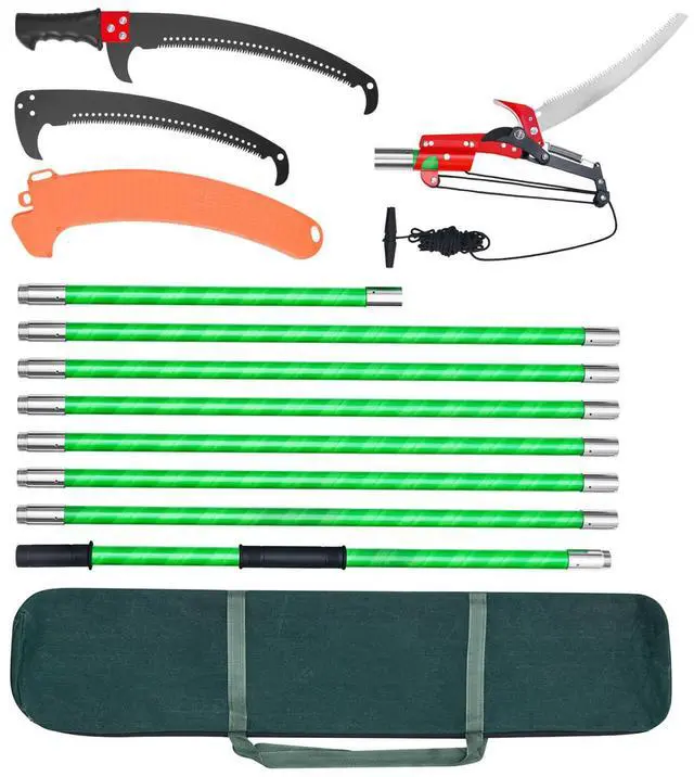 Poles: 8 Poles 8 m (including saw blade),Blade Material: 65Mn Steel,Pole Material: Fiberglass,Item Model Number: RUNZETOOL-GZJ-32G2,Product Weight: 15.65 lbs / 7.1 kg,Product Size Range: 3.87 ft - 26.55 ft / 118 cm - 809.3 cm