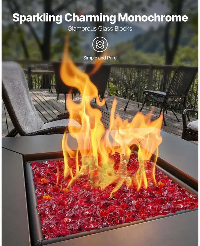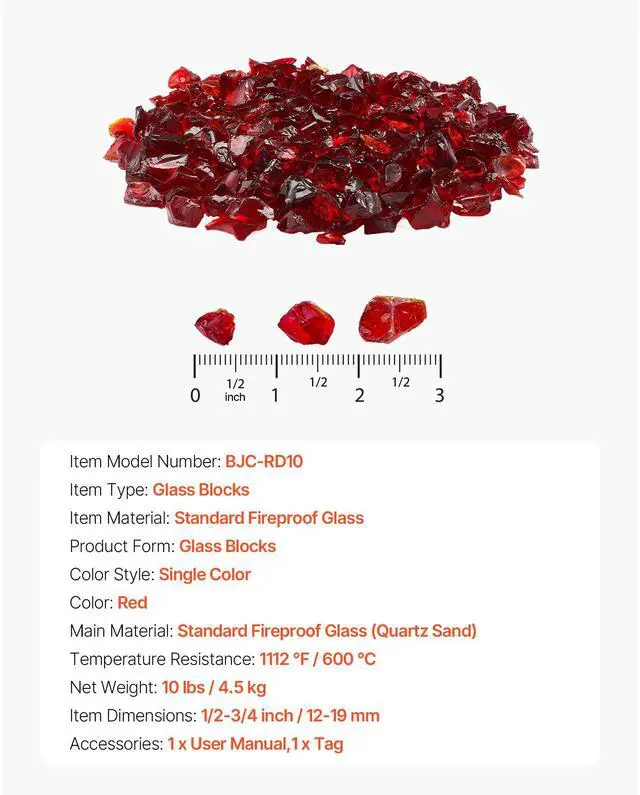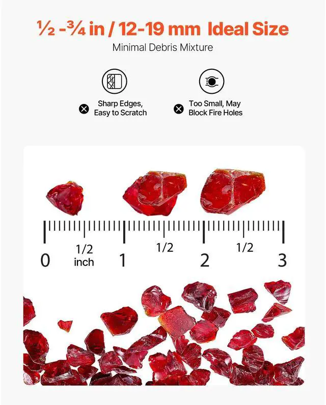 • VEVOR 10 LBS Fire Glass 3/4-Inch Fireplace Glass Rocks for Fire Pit Table Red