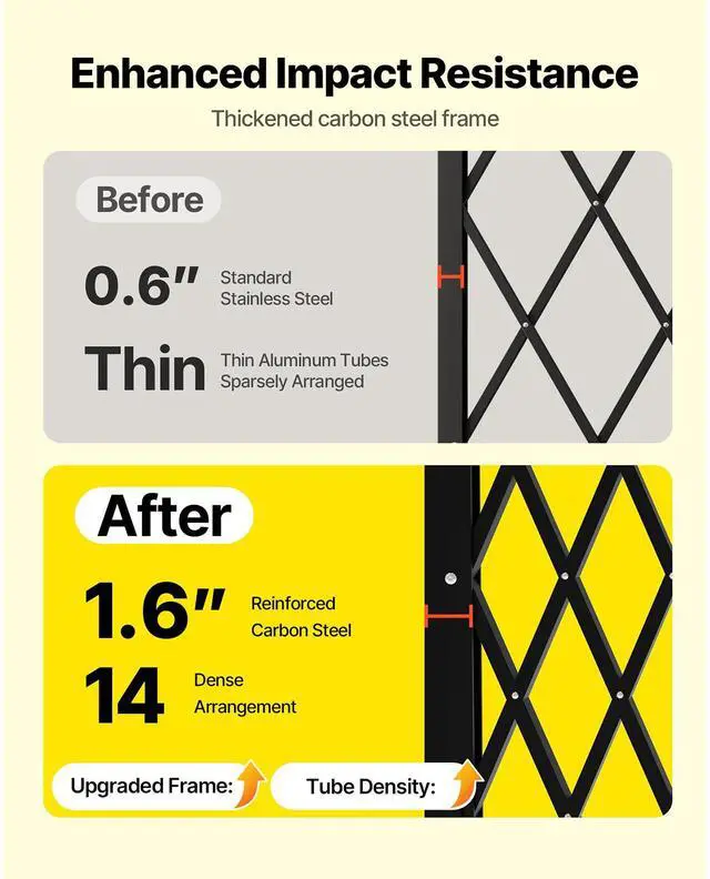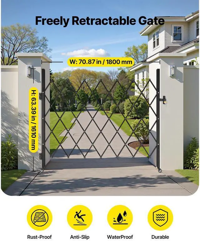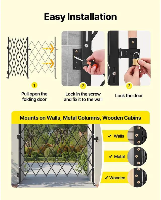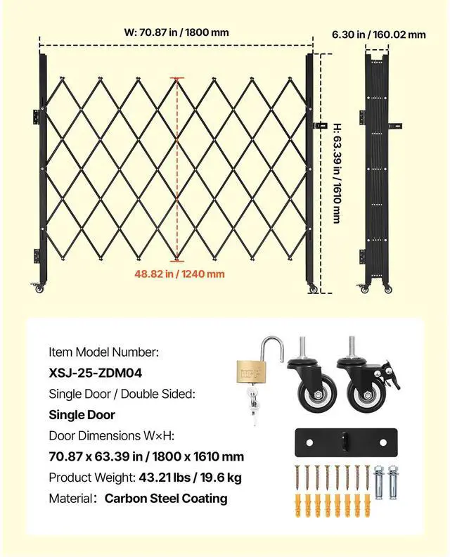 VEVOR Single Folding Security Gate, Lockable Scissor Gate with 360° Swivel Casters, Outdoor Barricade Steel Retractable Gates, for Entry Security, Garage, Warehouse & Pool, 70.87 x 63.39 in (W x H)