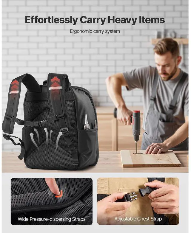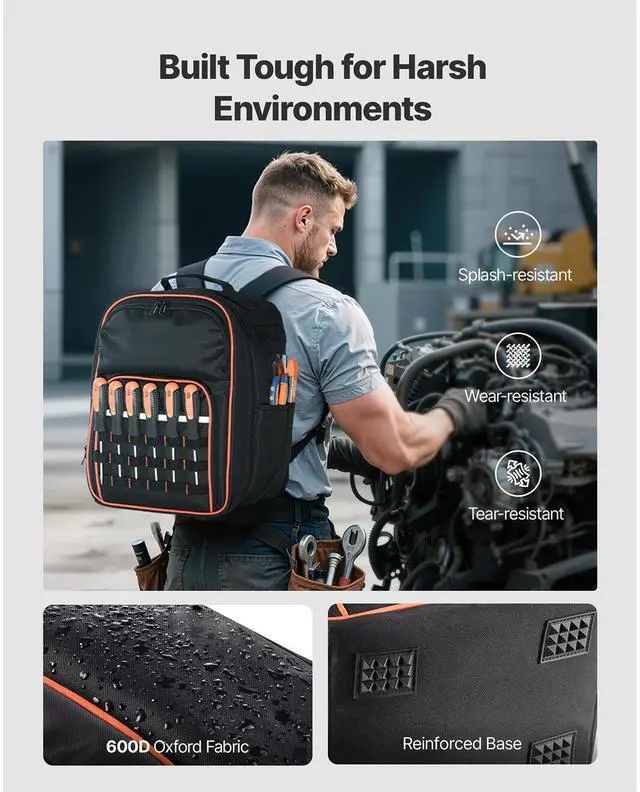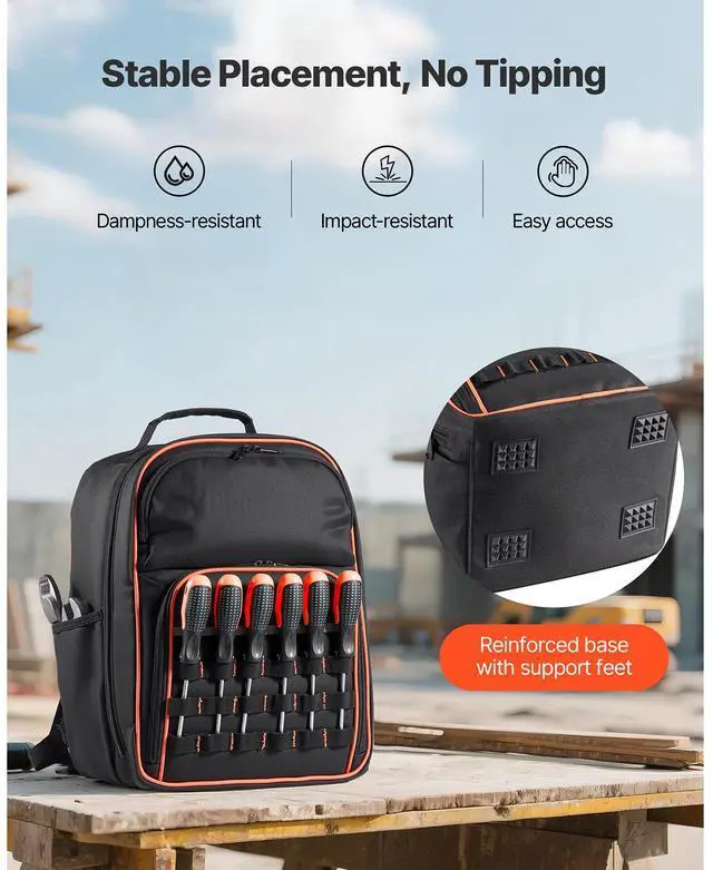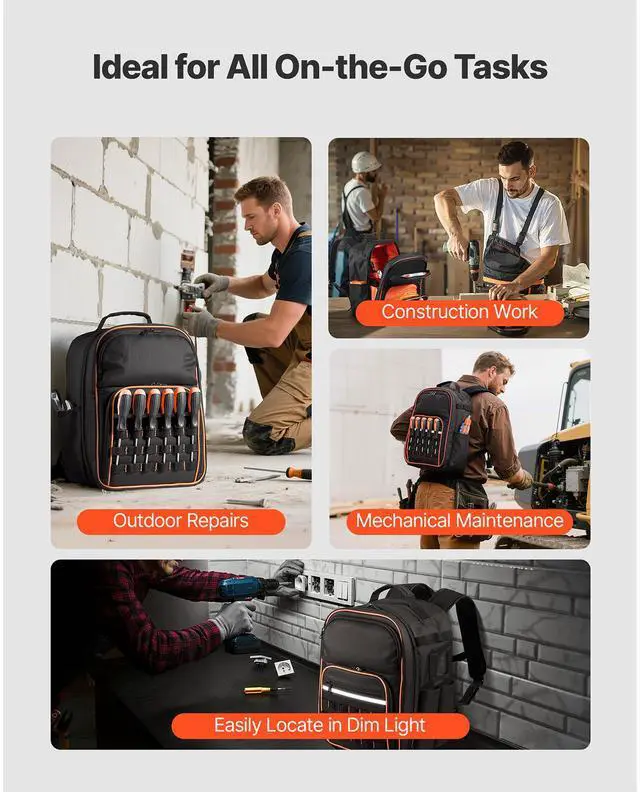 • VEVOR Tool Backpack 49 Pockets Tear-resistant Jobsite Backpack for Electrician