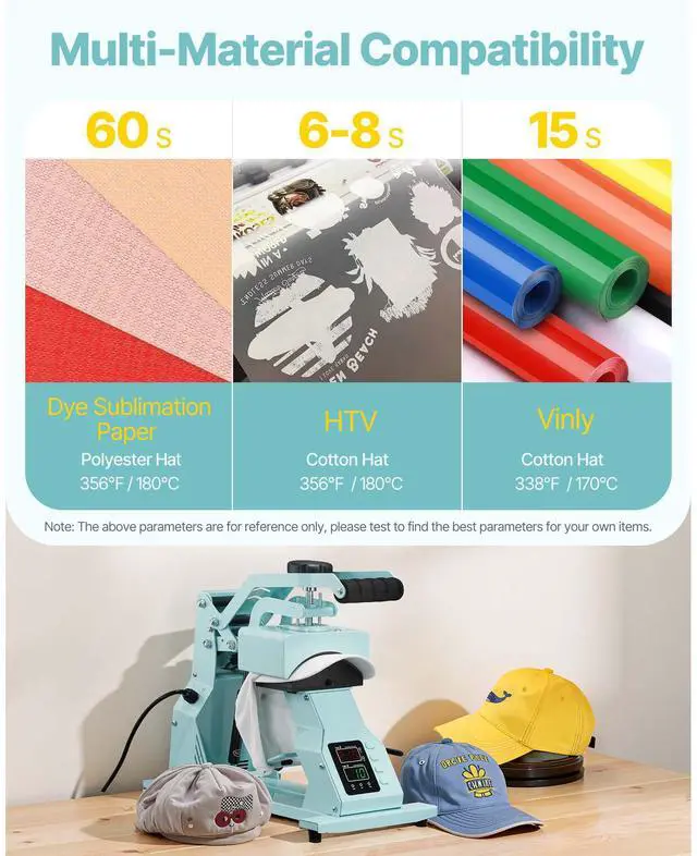 • VEVOR Hat Heat Press Machine for Caps Hat Press with 2pcs Platens for HTV Green