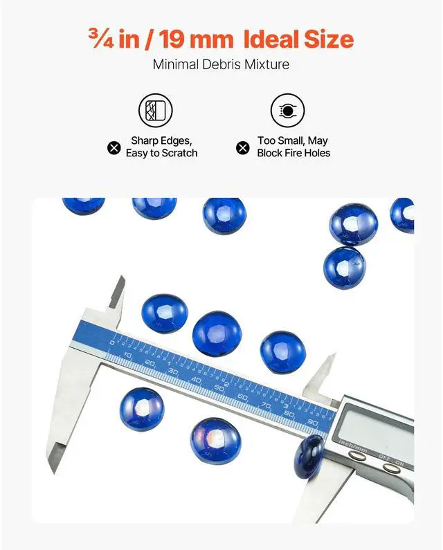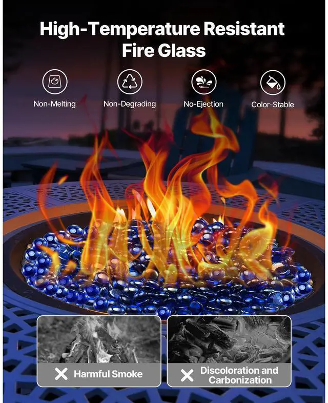 10 LBS Fire Glass 3/4-Inch Round Fireplace Glass Rocks for Fire Pit Cobalt Blue
