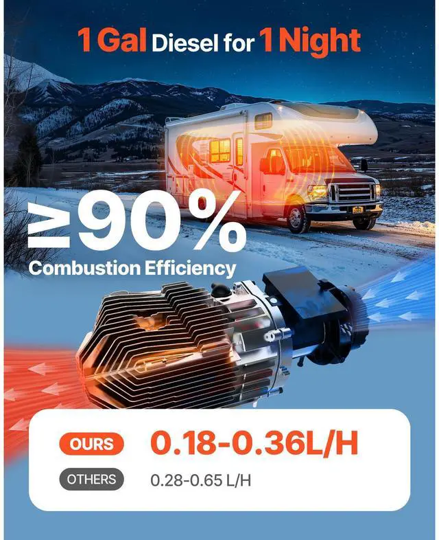 Fuel Consumption: 0.18-0.36 L/h,Fuel Efficiency: 90%,Operating Noise: 75dB,Operating Voltage: DC 12-24V,Item Model Number: CY-28,Applicable Altitude: Below 9843 ft / 3000 m,Adjustable Temperature Range: 32-104 / 0-40 (1-6 adjustable levels),Net Weight: 17.53 lbs / 7.95 kg (including all accessories),Product Size: 15.9 x 9.65 x 12 inch / 405 x 245 x 305 mm
