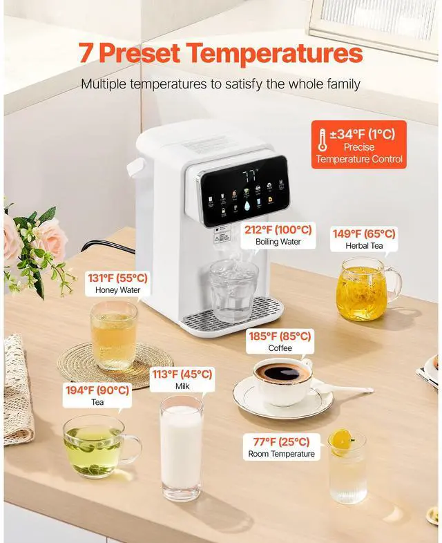 Countertop Instant Hot Water Dispenser with 7 Temps 7 Volumes 118oz Tank