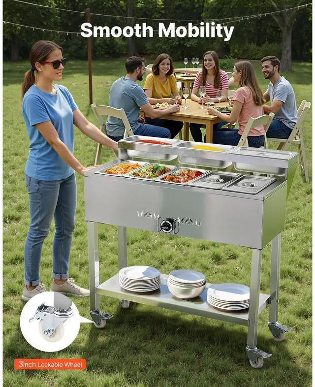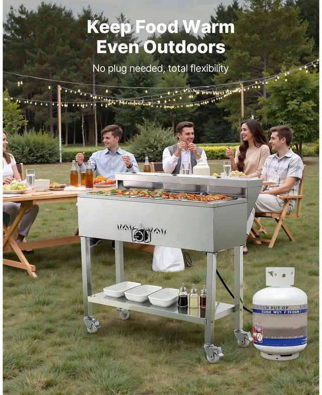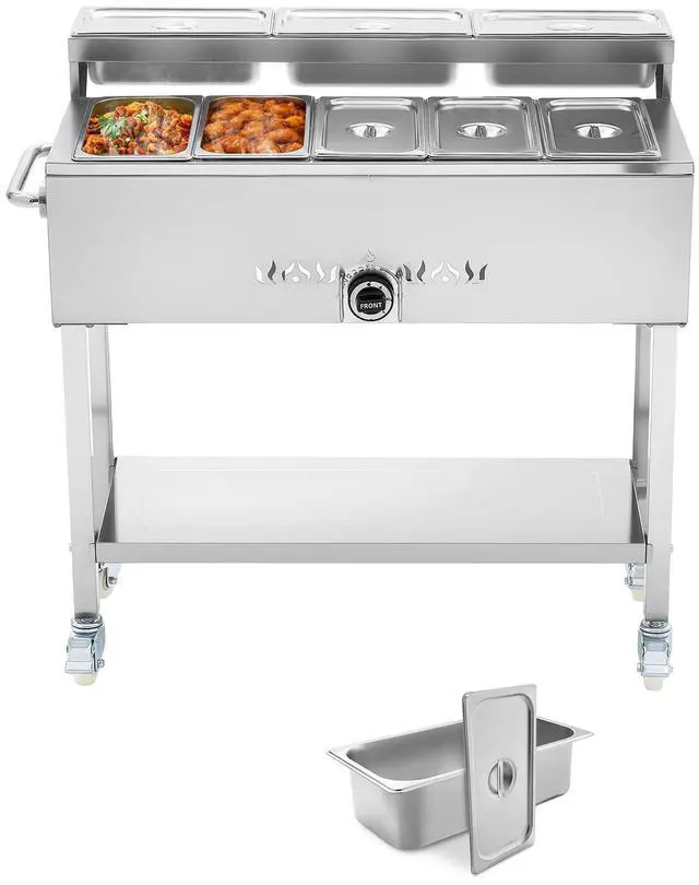 Commercial Propane Steam Table Food Warmer 5 Food Pans & 3 Condiment Pans