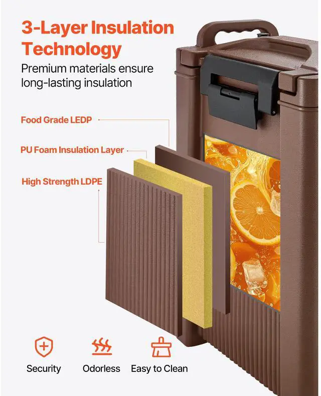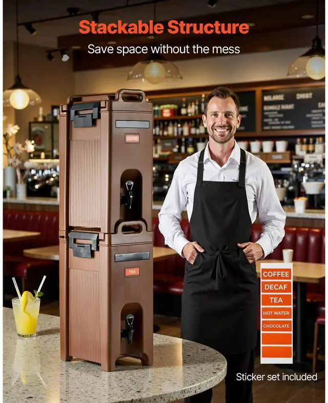 Insulated Hot and Cold Beverage Dispenser 5Gal/19L Food-Grade Drink Server