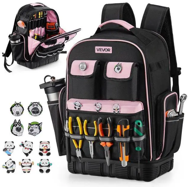 VEVOR Tool Backpack 56 Pockets Tear-resistant Jobsite Backpack for Electrician