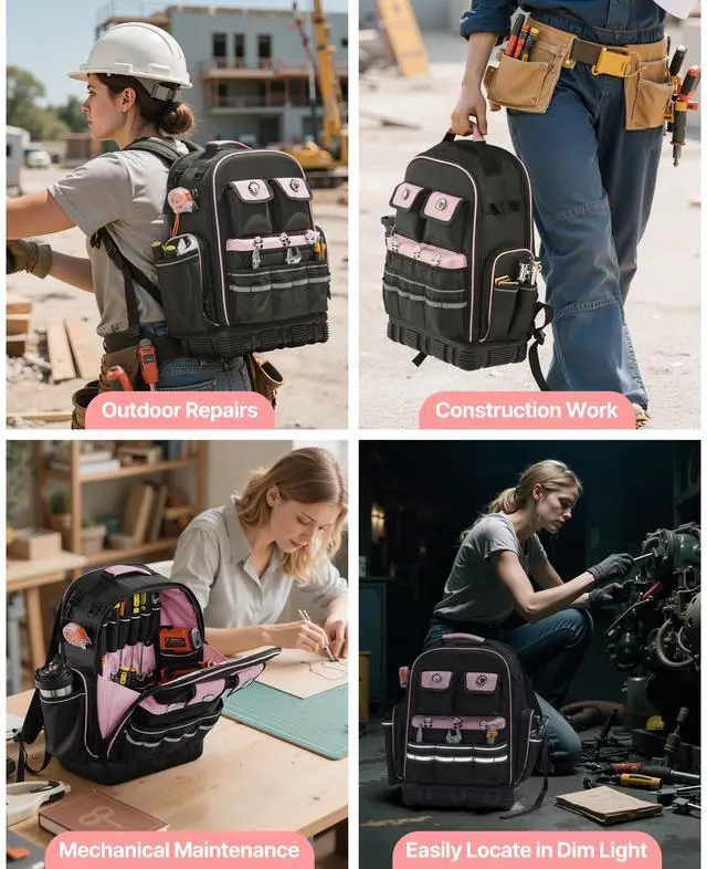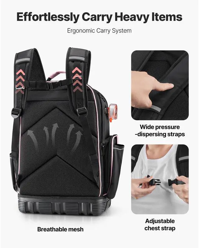 Inner Layer: 600D Polyester Oxford Fabric,Color: Black & Pink,Outer Layer: 1680D Polyester Oxford Fabric,Item Model Number: ZL-GJD-0310,Product Weight: 5.71 lbs / 2.59 kg,Bottom: PVC Plastic Base,Product Dimensions: 13 x 7.87 x 19.29 in / 330 x 200 x 490 mm,Number of Pockets: 56 pockets,Main Material:,Rated Load: 70 lbs / 31.75 kg