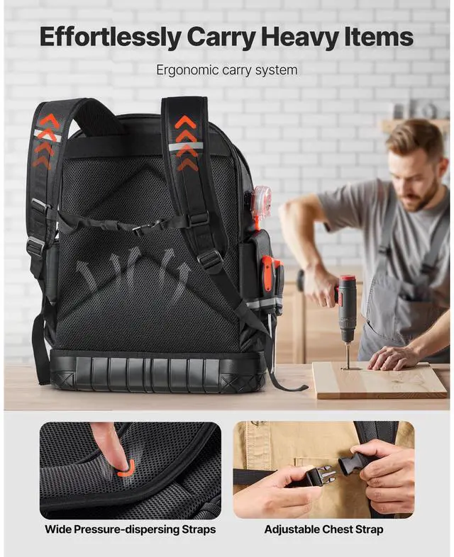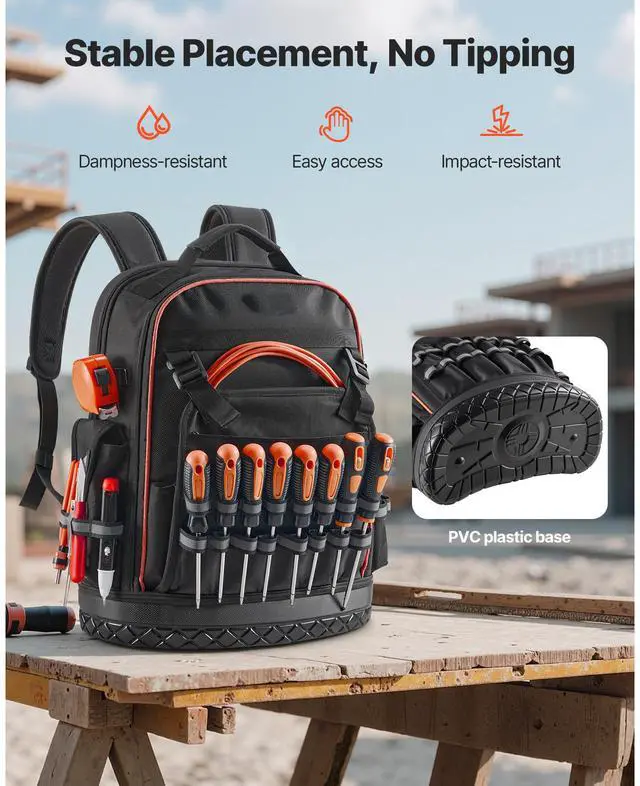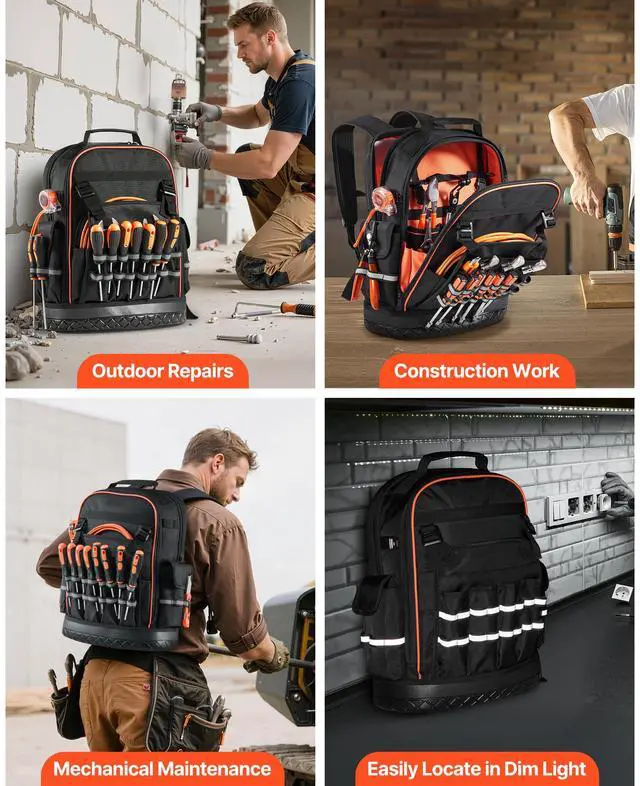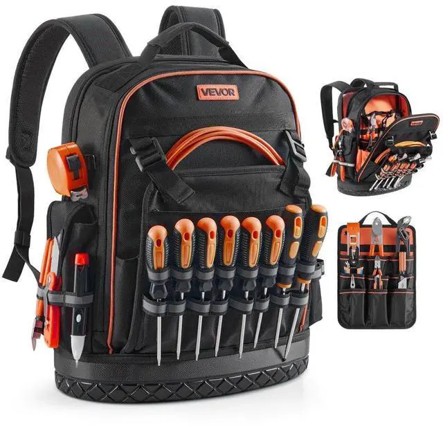 VEVOR Tool Backpack 64 Pockets Tear-resistant Jobsite Backpack for Electrician