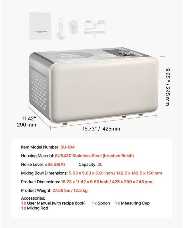 Freezing Bowl Dimensions: 7.48 x 7.48 x 5.61 inch / 190.5 x 190.5 x 142.5 mm