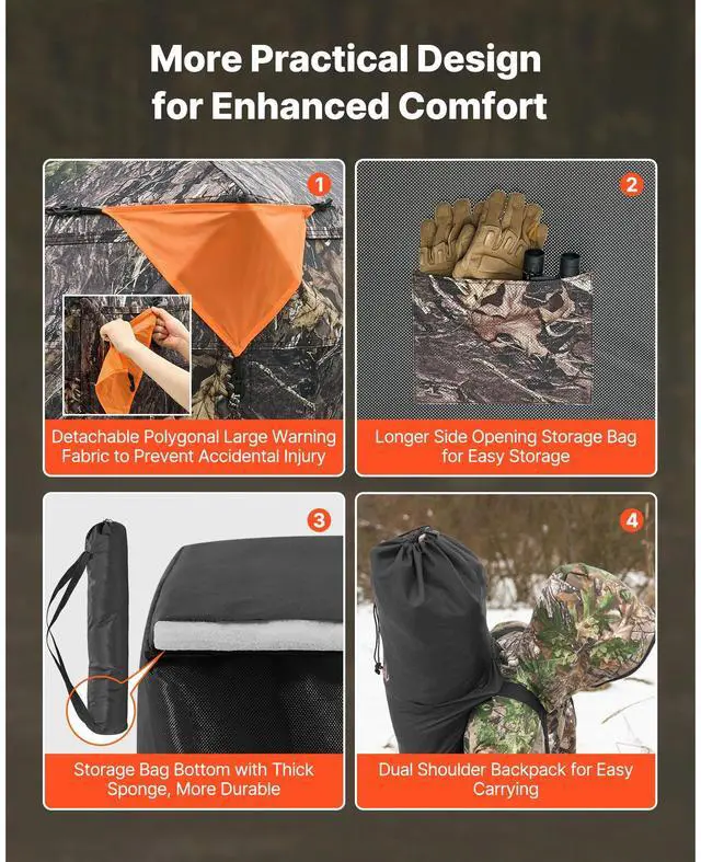 Item Model Number: ZH585867-360TS,Product Weight: 7.14 kg / 15.76 lbs,Product Dimensions: 1480x1480x1700 mm / 58.27x58.27x66.93 inch,Main Material: Waterproof 150D Camouflage Fabric