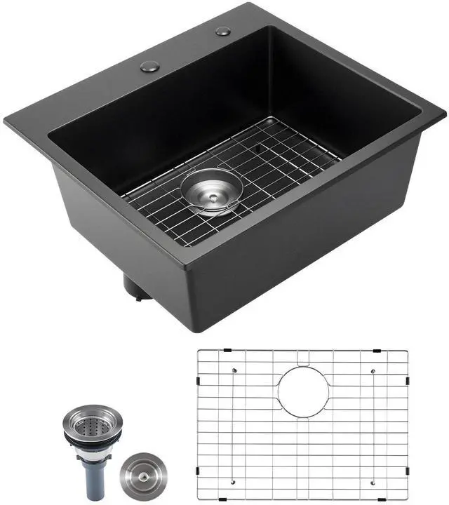 25 inch Granite Kitchen Sink Top Mount Single Bowl Drop-In Basin for RV Bar
