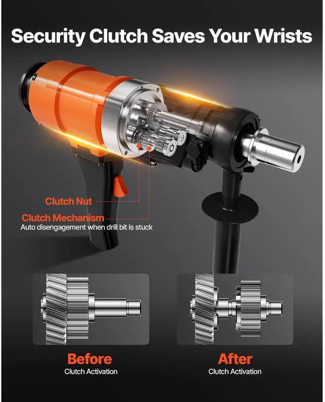 Diamond Core Drill Machine Handheld Concrete Core Drill Rig 8 in Dia 1800W