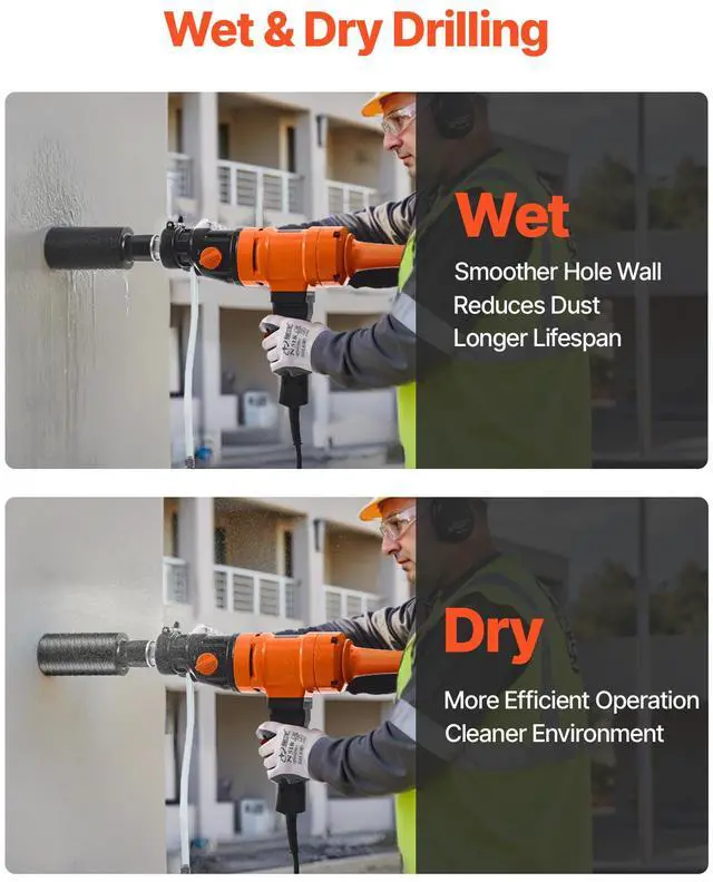 No-Load Power: 700W,Brick Drilling Capacity: Max 8 in/200 mm,Concrete Drilling Capacity: Max 3.1 in/80 mm,Output Shaft Size: UNC1 1/4-7 External Thread,Max Load Power: 1800W,Net Weight (Machine Only): 17.6 lbs/8 kg,Net Weight (Including Accessories): 35.7 lbs/16.2 kg,Type: Handheld,Included Drill Bits: 4 Pieces,Water Inlet Size: Mesh Tube Fitting, OD 0.6 in/16 mm,Item Model Number: Z1Z-CF02-80S,No-Load Speed: 2-Speed Adjustable1075 RPM (1st), 2300 RPM (2nd),Product Dimensions (L x W x H): 16.5 x 4.3 x 11.8 in/420 x 110 x 300 mm