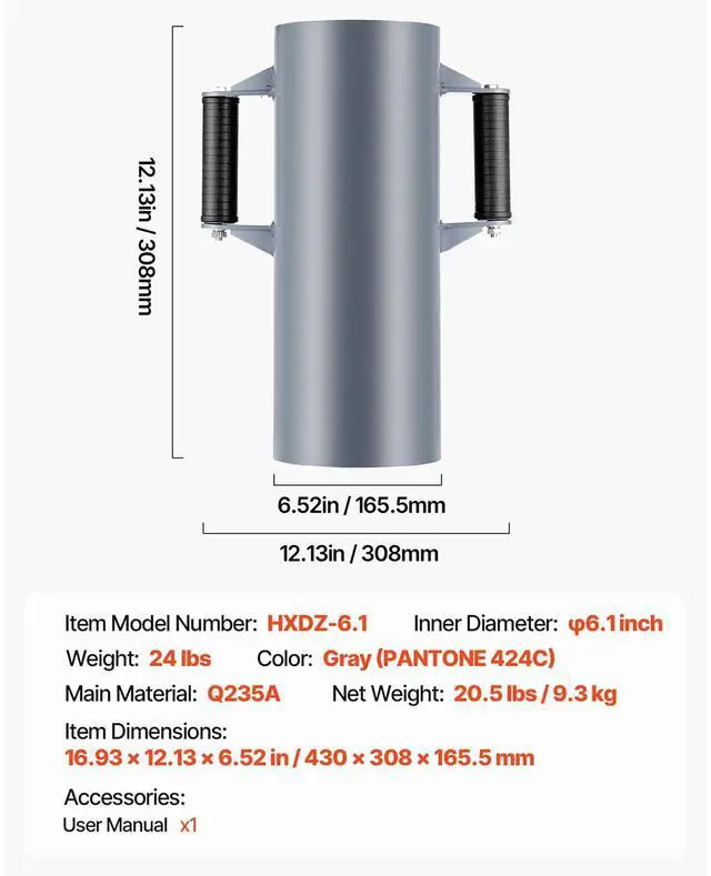 Inner Diameter: 6.1 inch,Color: Gray (PANTONE 424C),Item Model Number: HXDZ-6.1,Item Dimensions: 16.93 x 12.13 x 6.52 in / 430 x 308 x 165.5mm,Net Weight: 20.5 lbs / 9.3 kg,Weight: 24 lbs,Main Material: Q235A