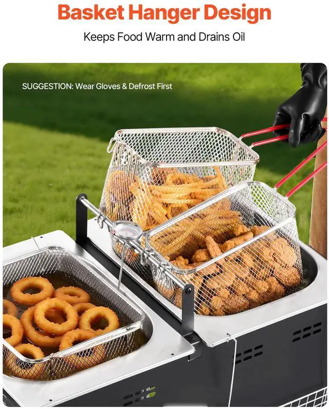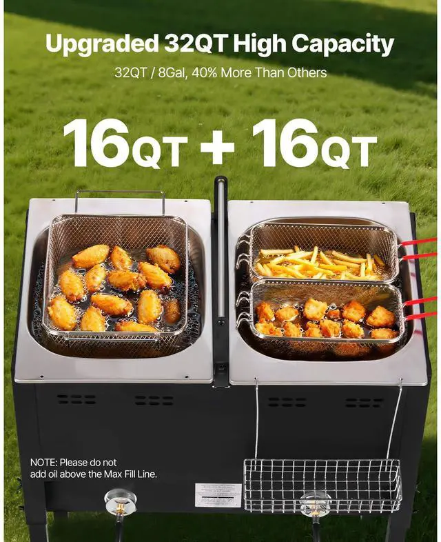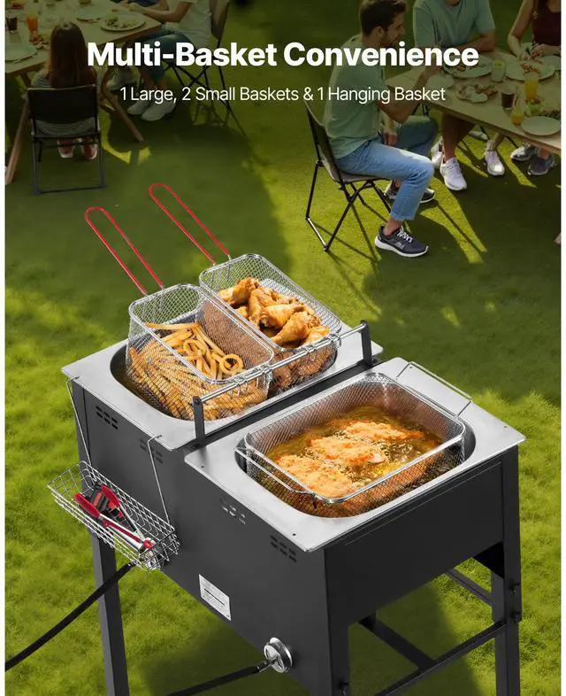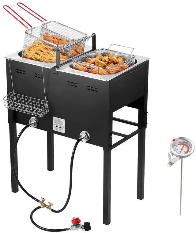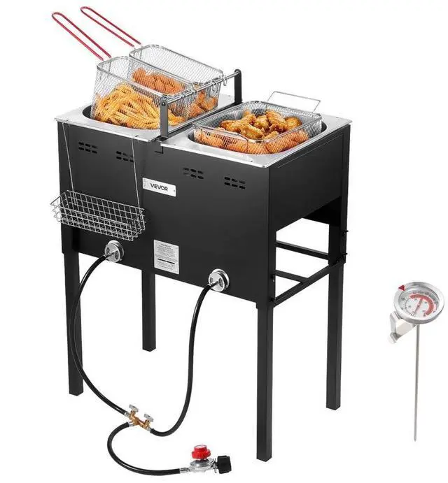 16QTx2 Outdoor Propane Deep Fryer Commercial Free Standing Cooker Two Tank