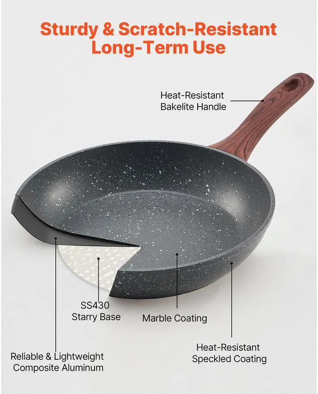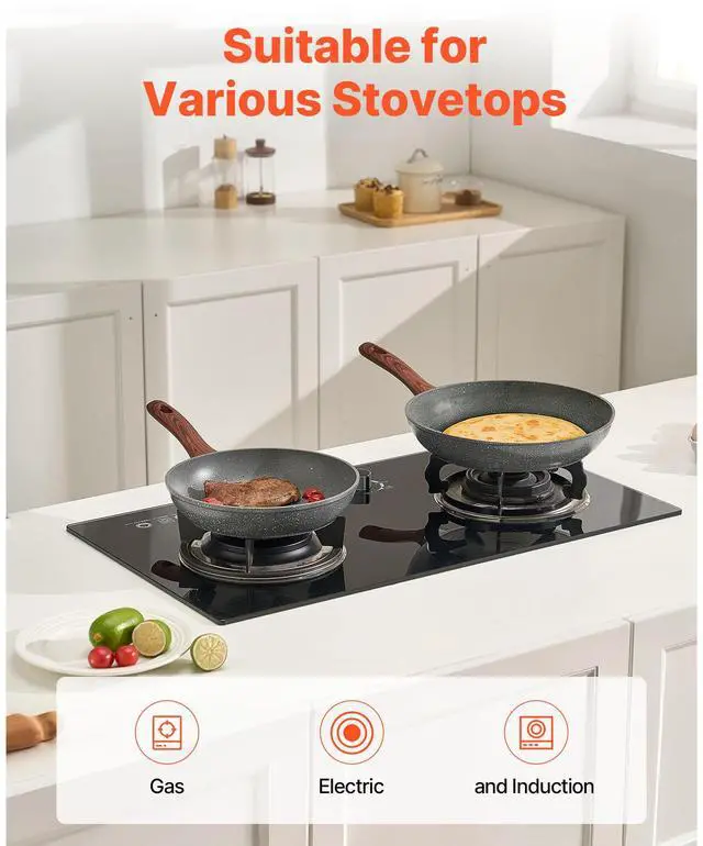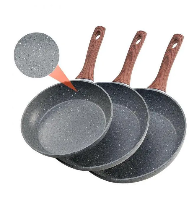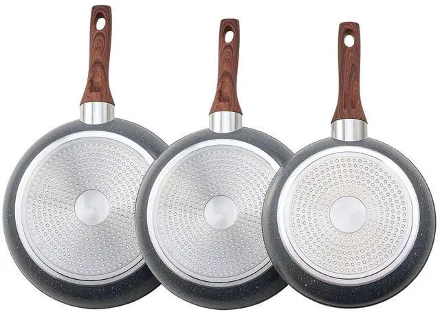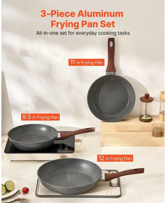 3 Piece Frying Pan Aluminum Skillet Set 9.5 11 12 in Nonstick Pre-Seasoned Grey