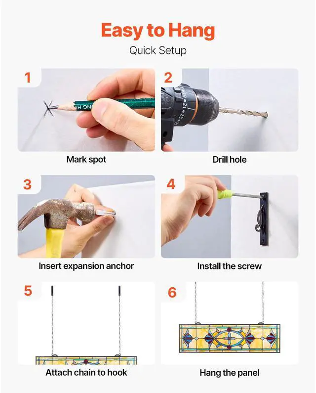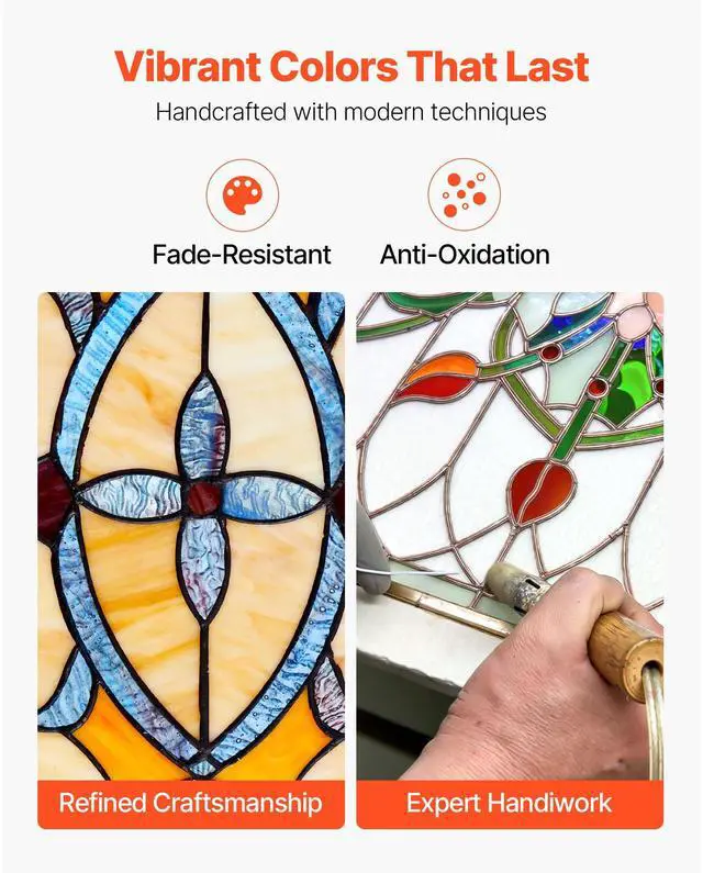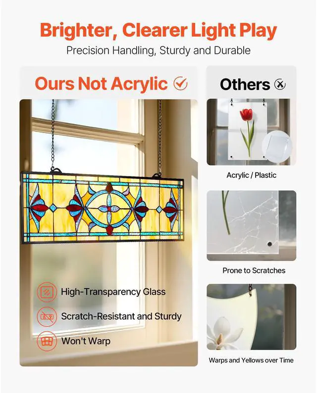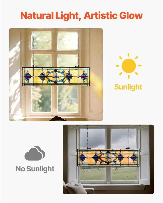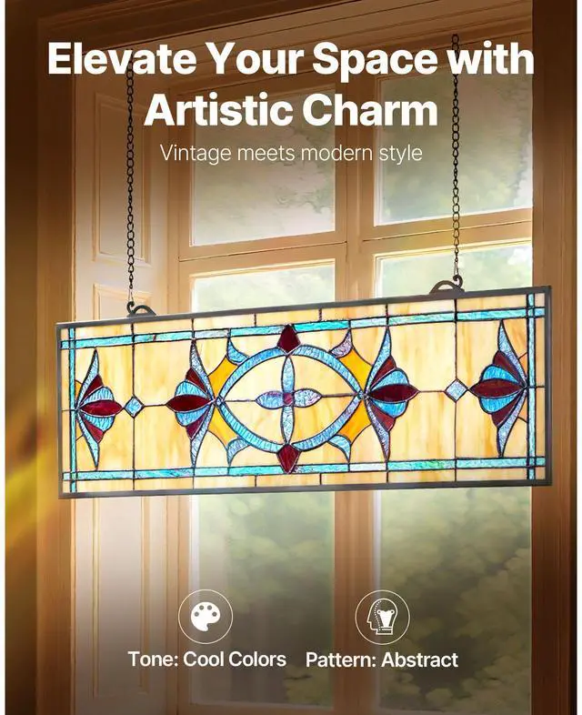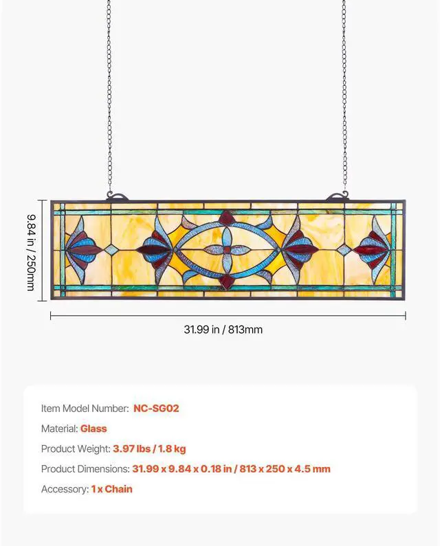 Stained Glass Tiffany Style Hanging Window Panel with Chain 32 x 10 Inches