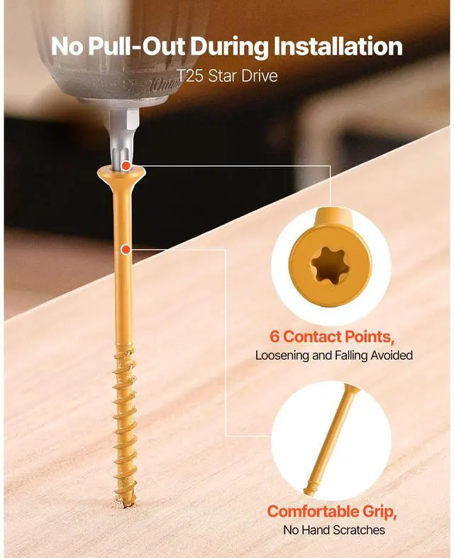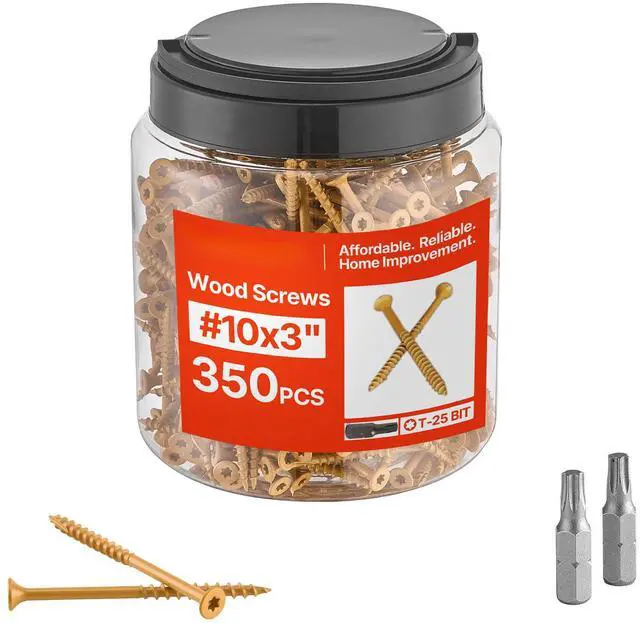 #10 Wood Screws Anti-Rust 3-Inch Outdoor Deck Screws 350PCS T25/Torx Star Drive