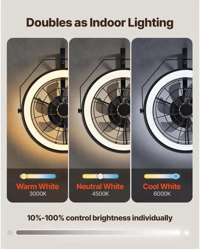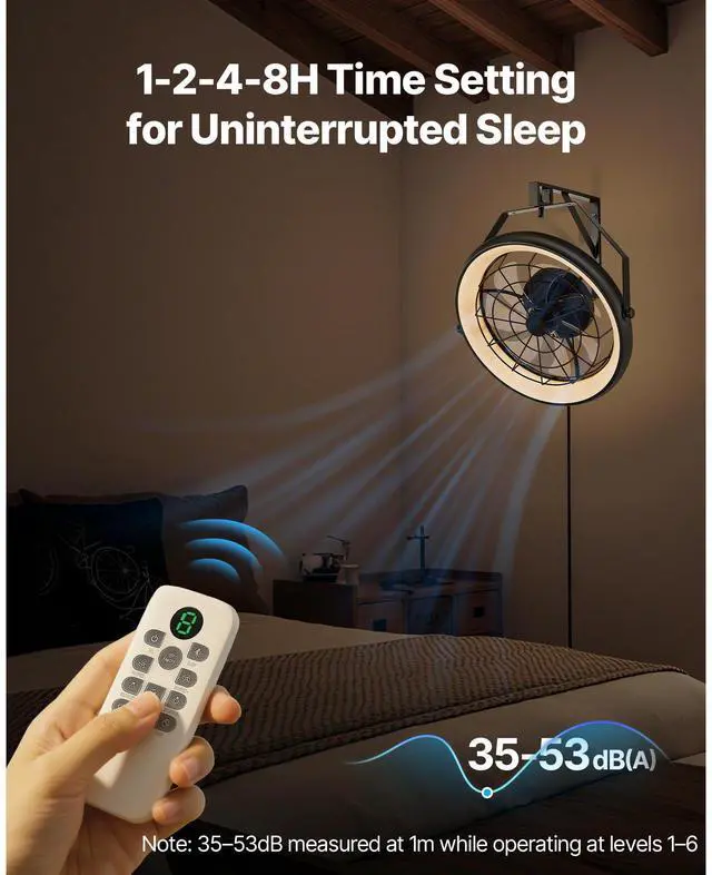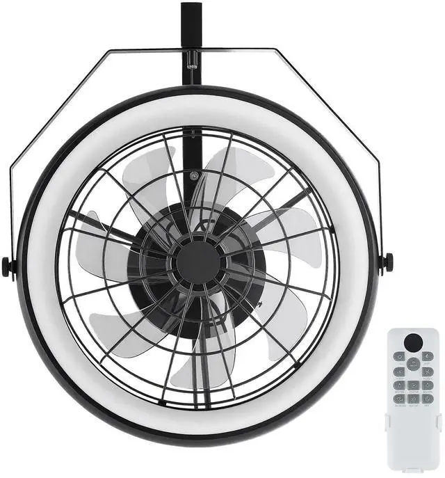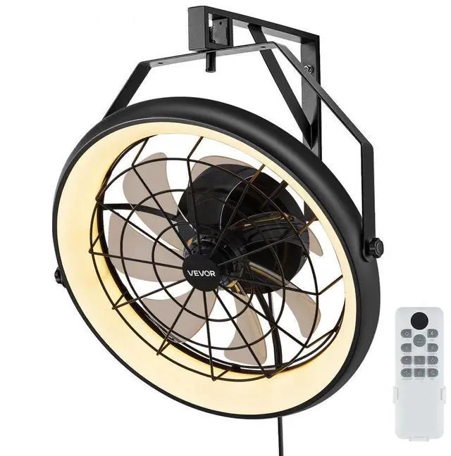 22 Inch Wall Mounted Fan with Light Remote 6 Speed for Patio Workshop