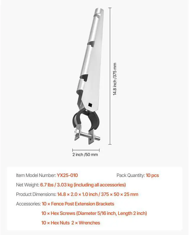 Pack Quantity: 10 pcs,Item Model Number: YX25-010,Product Dimensions: 14.8 × 2.0 × 1.0 inch / 375 × 50 × 25 mm,Net Weight: 6.7 lbs / 3.03 kg (including all accessories)