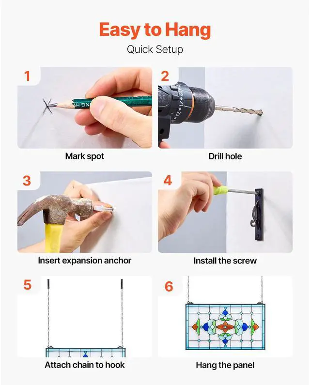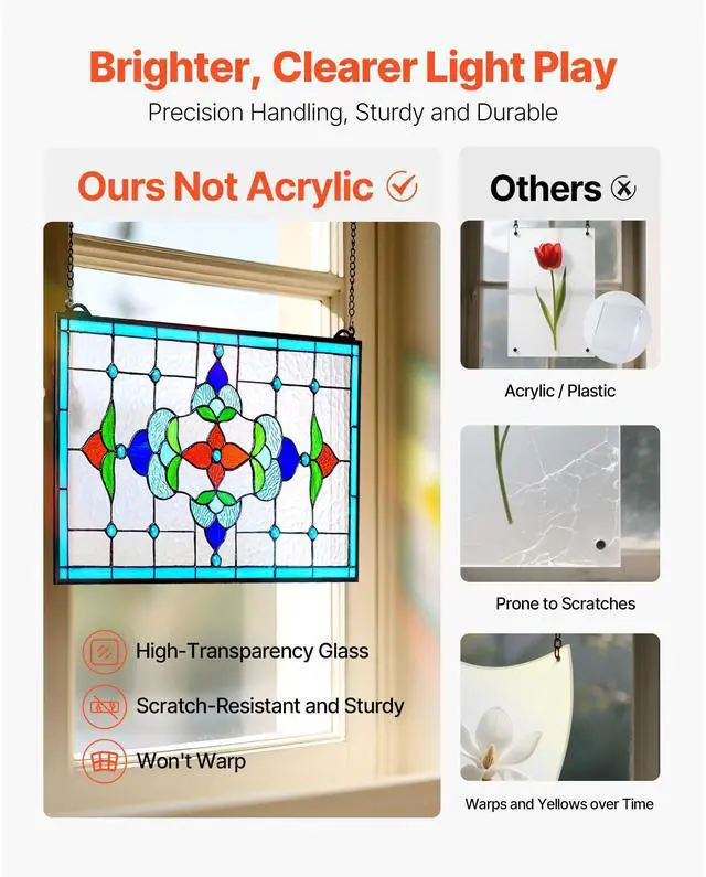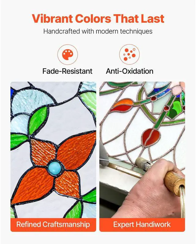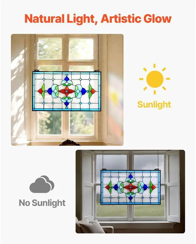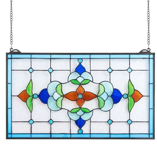 Stained Glass Tiffany Style Hanging Window Panel with Chain 26 x 16 Inches