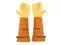 Hand Material: Sheepskin,Sleeve Material: Cowhide,Size: Medium,Sleeve Color: Orange,Hand Width: 4.72 inch / 120 mm,Middle Finger Length: 3.66 inch / 93 mm,Weight: 0.67 lbs / 0.30 kg,Product Size: 17.52 × 7.64 × 0.59 inch / 445 × 194 × 15 mm,Thickness: 0.06 inch / 1.5 mm,Hand Color: Yellow,Item Model Number: DS-001,Style: Long-sleeve,Cuff Adjustment: Yes
