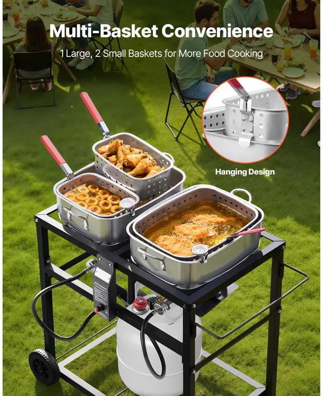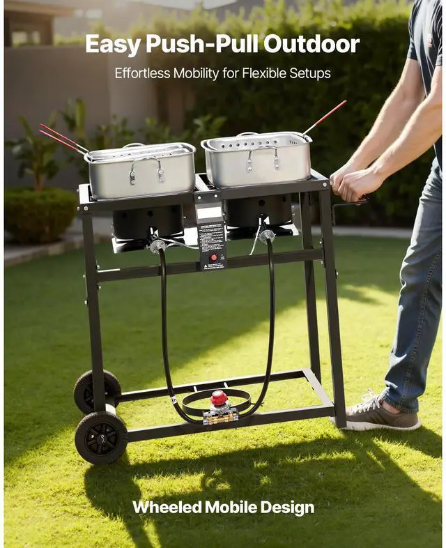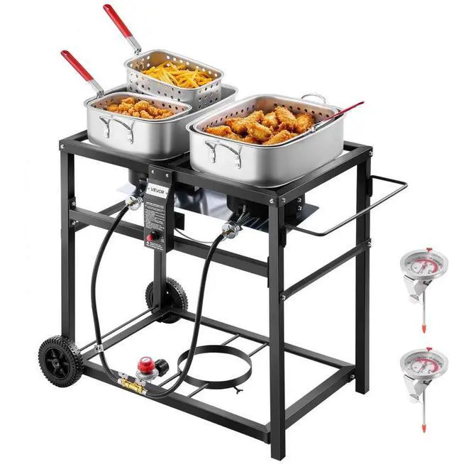 18QTx2 Outdoor Propane Deep Fryer Commercial Cooker Cart with Wheel Two Tank