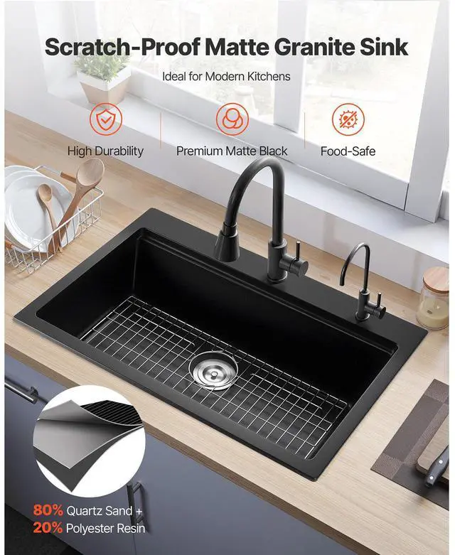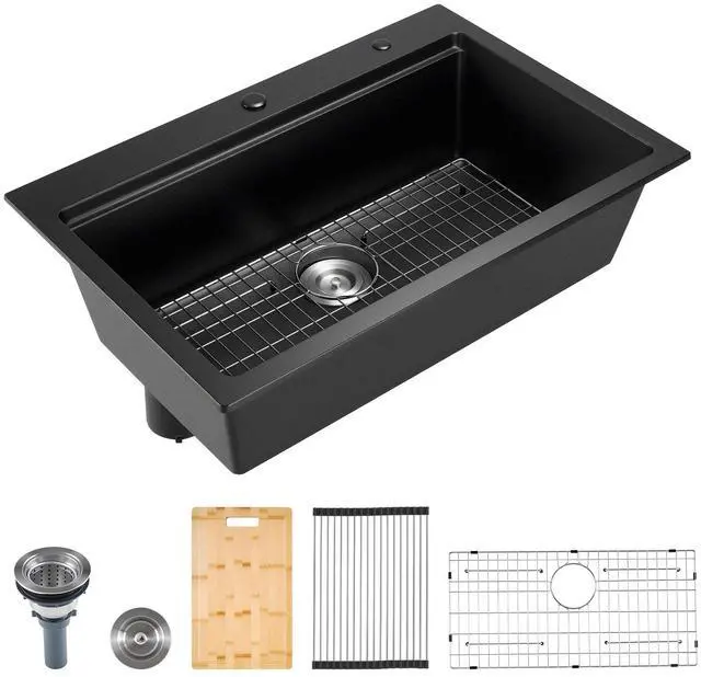 33 inch Granite Kitchen Sink Top Mount Single Bowl Drop-In Basin for RV Bar
