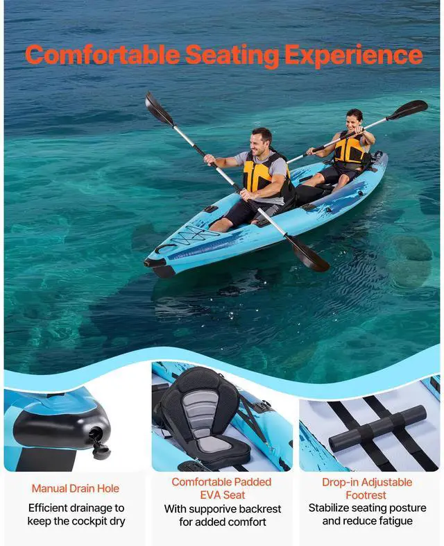 VEVOR Inflatable Kayak 2-Person Inflatable Recreational Kayak 700LBS Capacity