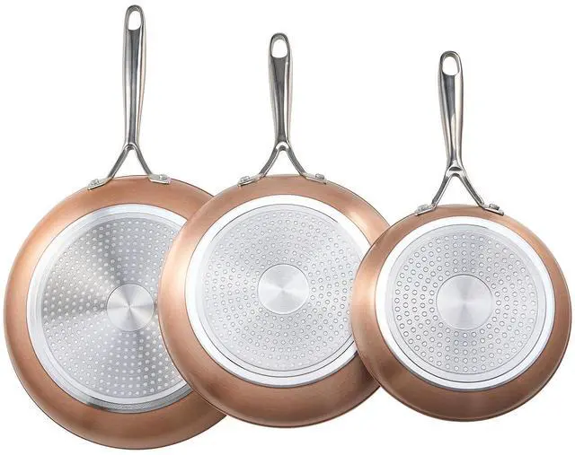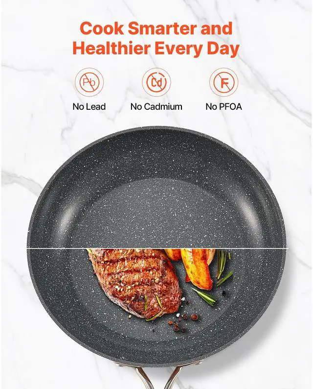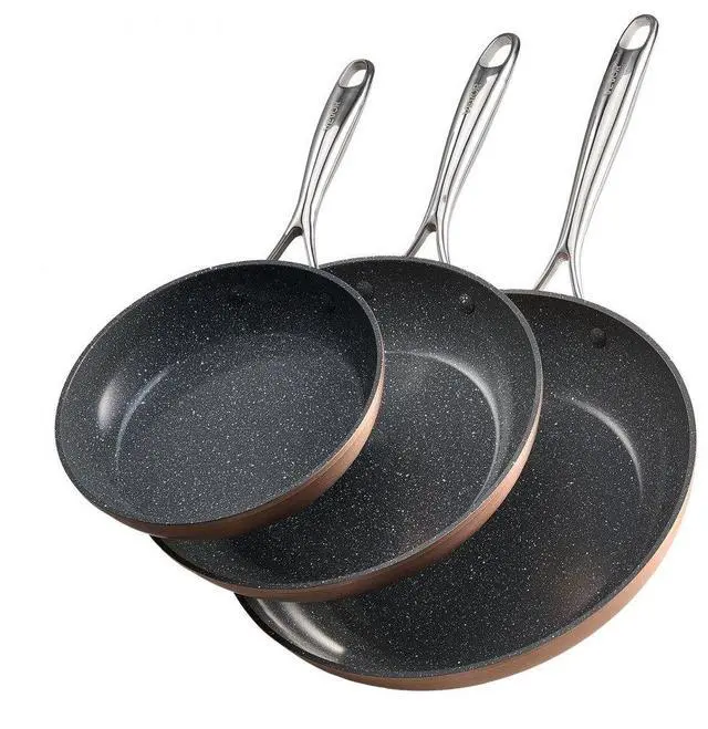 3 Piece Frying Pan Aluminum Skillet Set 8 10 12 in Handle Pre-Seasoned Grey