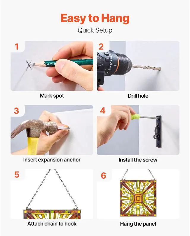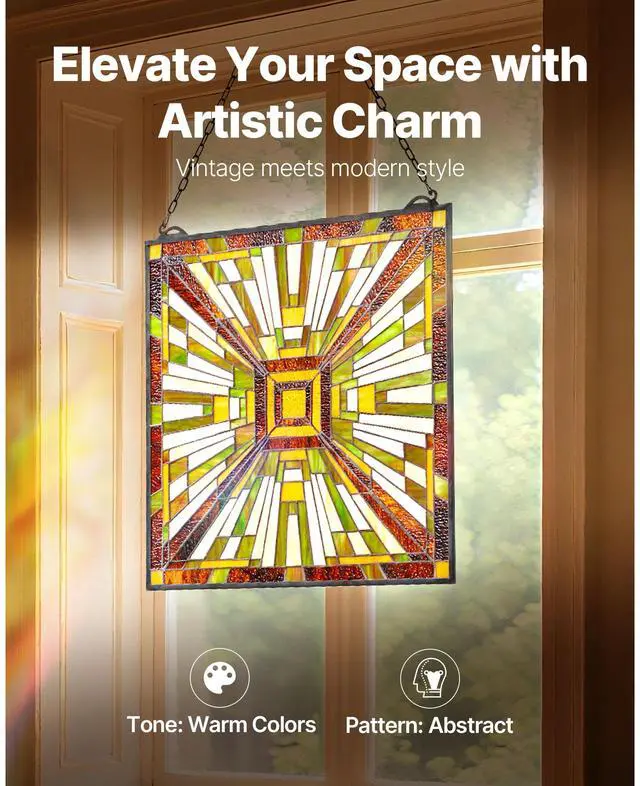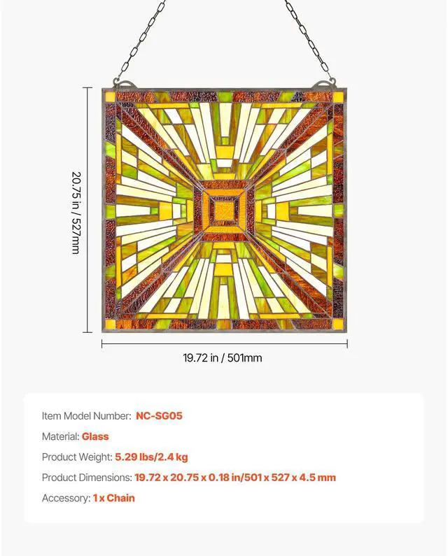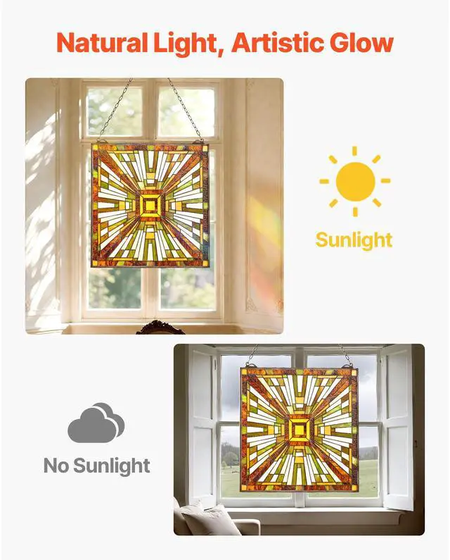Stained Glass Tiffany Style Hanging Window Panel with Chain 20 x 21 Inches