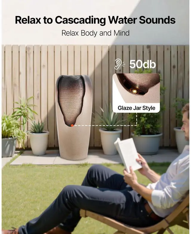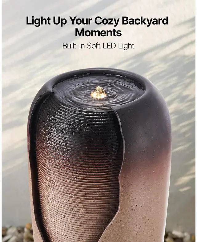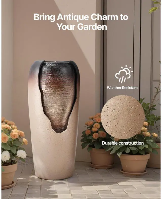 Outdoor Water Fountain 1-Tier Glazed Jar Style 30.71 in Fountains Coffee