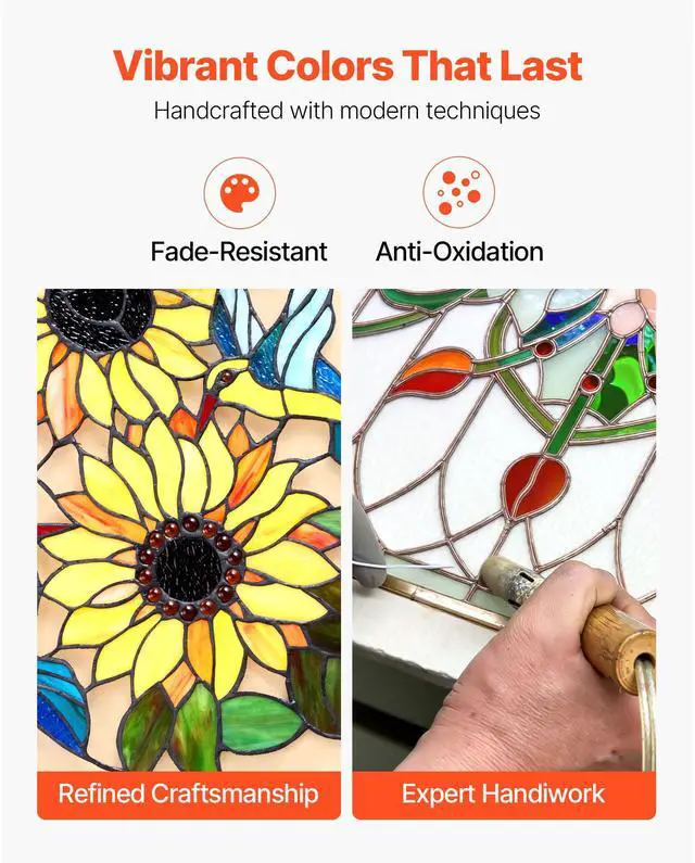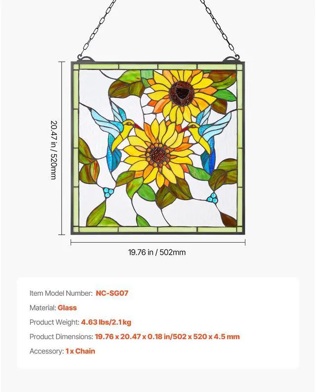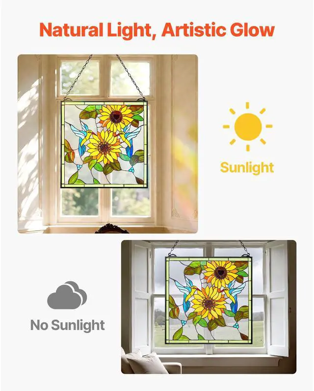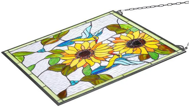 Stained Glass Tiffany Style Hanging Window Panel with Chain 20 x 20 Inches