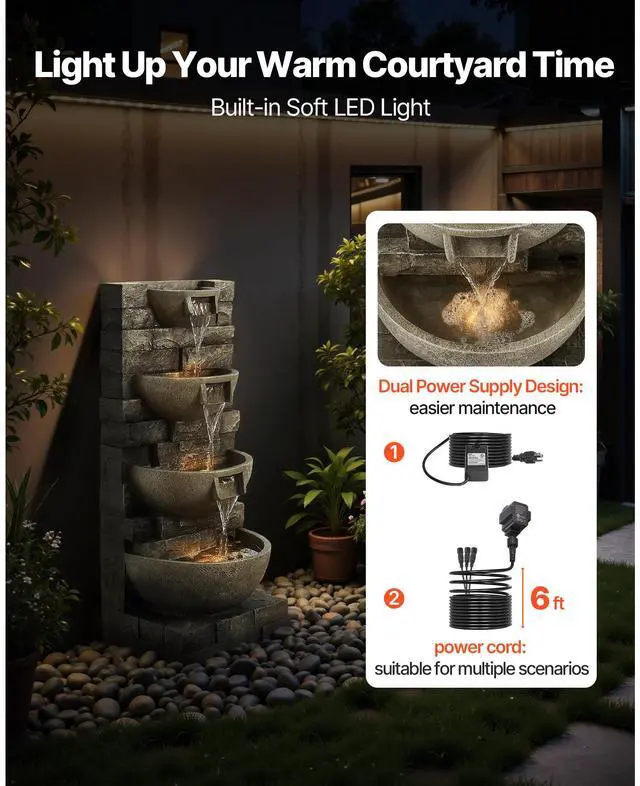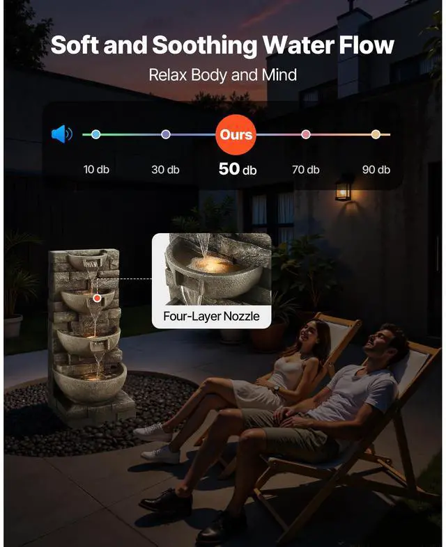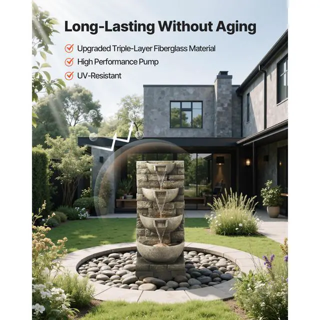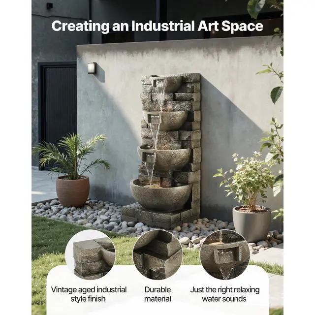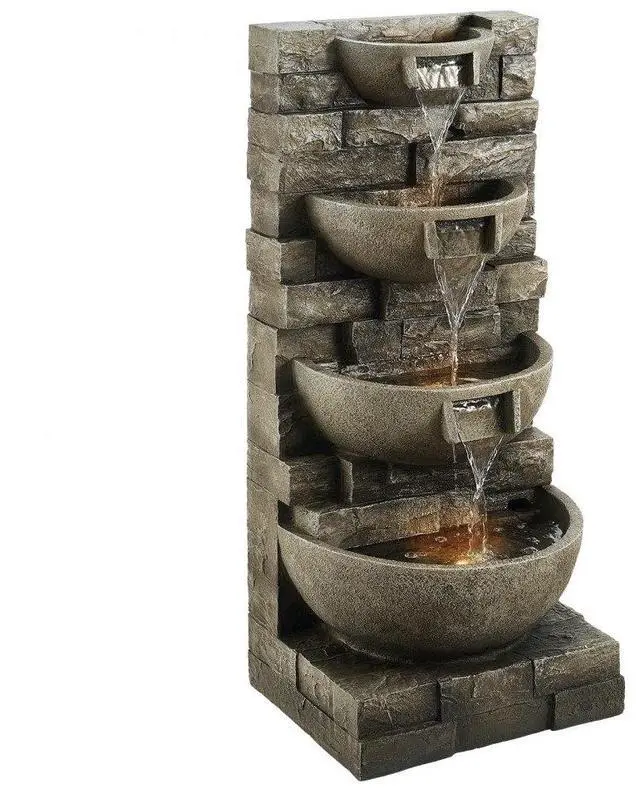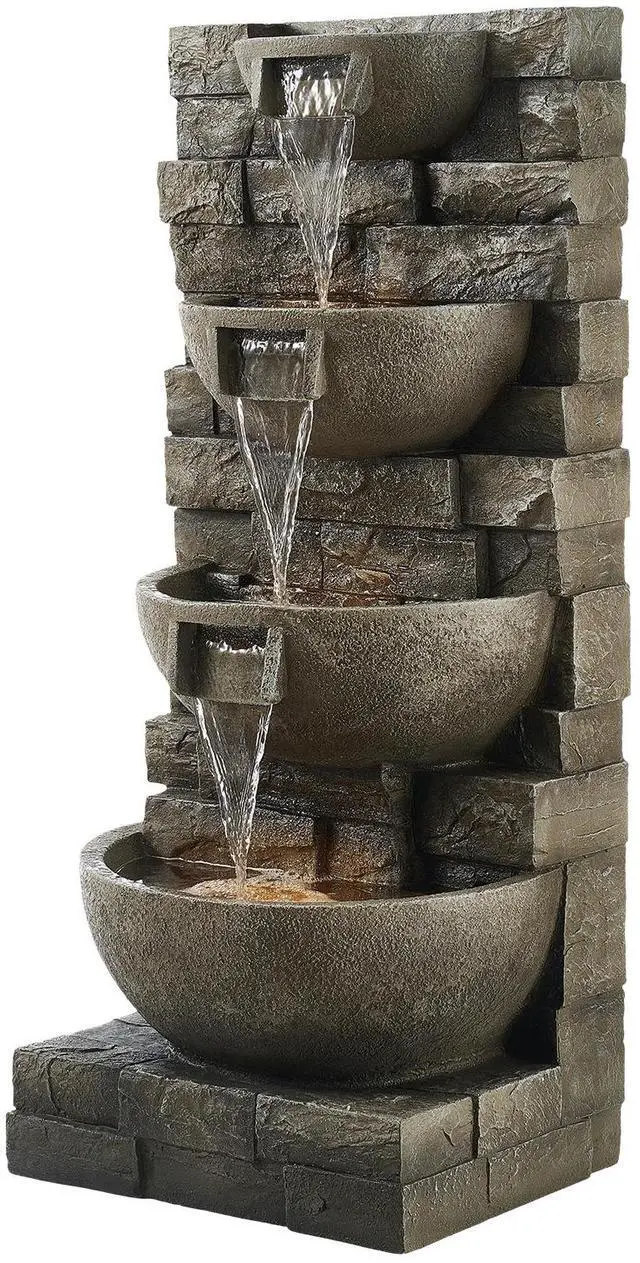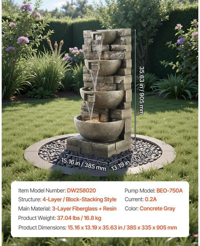 Outdoor Water Fountain 4-Tier Yard Fountain 35.63 in Block Stack Style