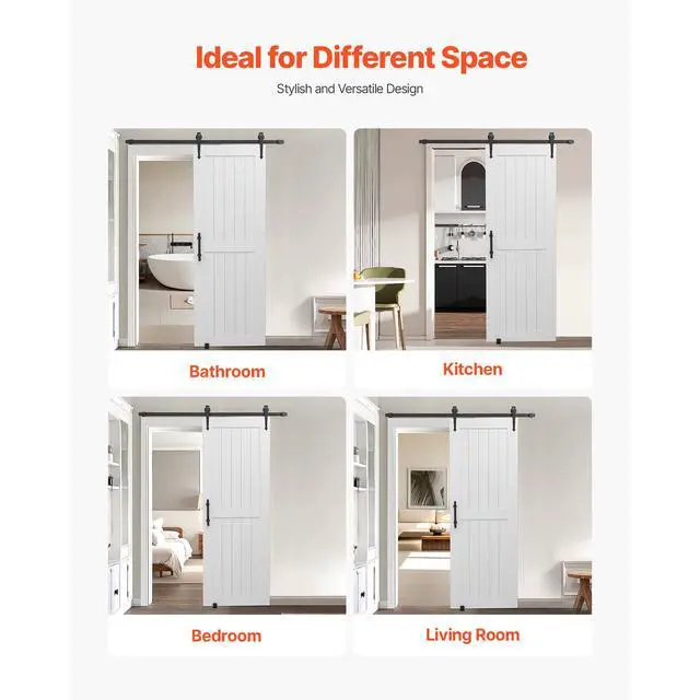 VEVOR Sliding Barn Door with Hardware Kit 30 x 84 inch MDF Panel PVC Surface