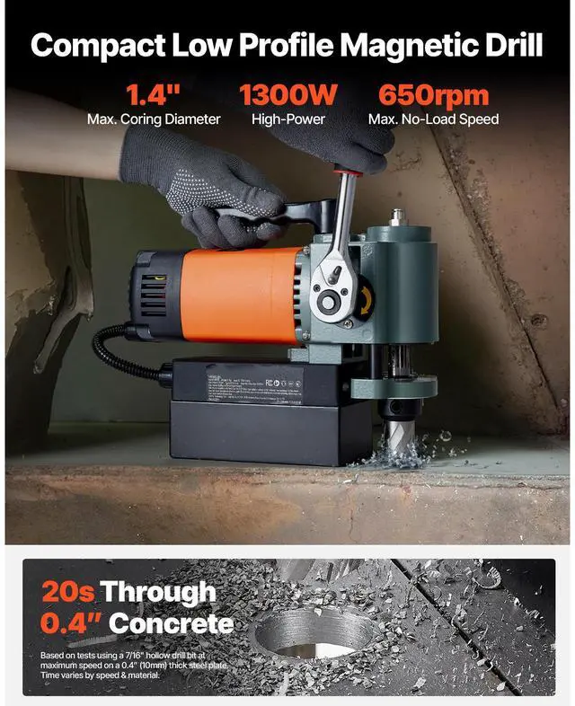 VEVOR Low Profile Magnetic Drill Press Mag Drill Press 1300 W 1.4 in Boring Dia