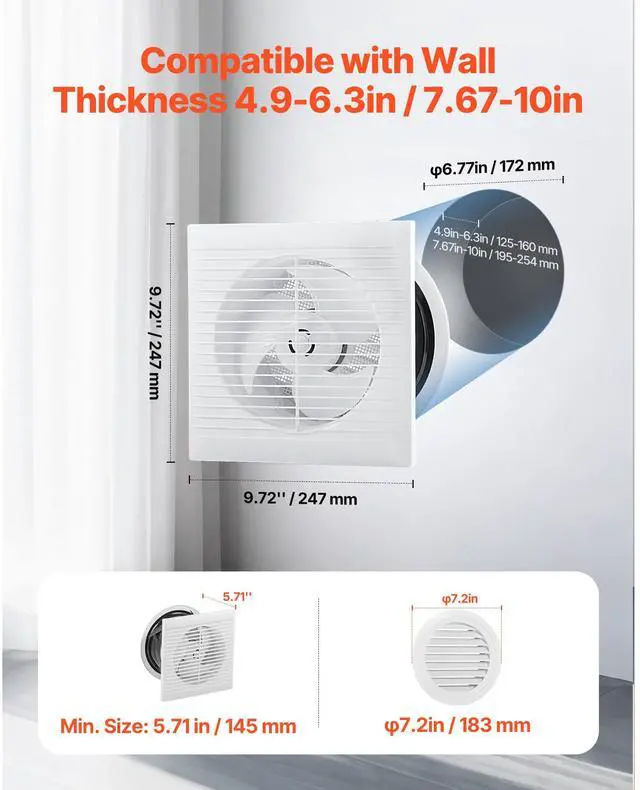 6 Inch Through The Wall Ventilation Fan 110 CFM Exhaust Fan AC Motor
