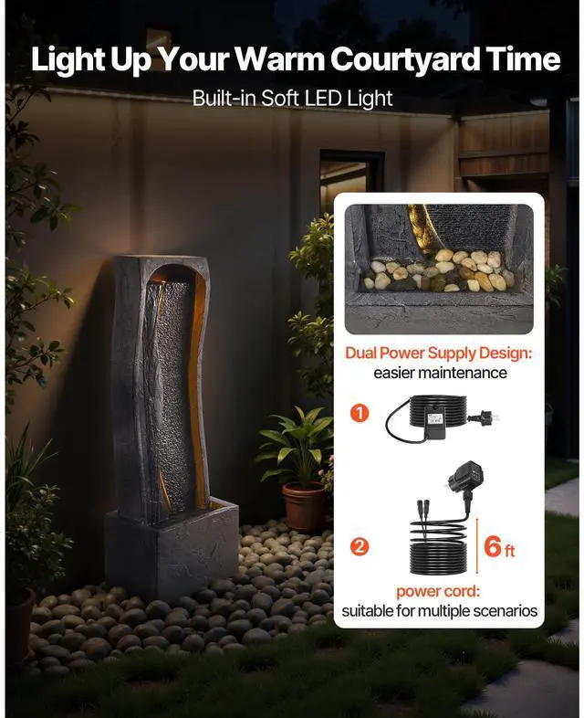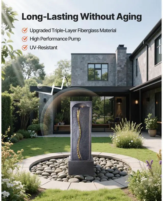 Outdoor Water Fountain 1-Tier Rock Base Style 38.58 in Height Fountains