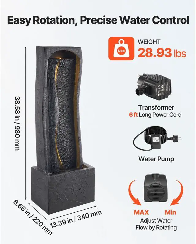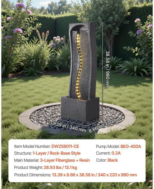 Pump Model: BEO-750A,Color: Black,Item Model Number: DW258011,Product Weight: 28.93 lbs / 13.1 kg,Structure: 1-Layer / Rock-Base Style,Product Dimensions: 13.39 x 8.66 x 38.58 in / 340 x 220 x 980 mm,Current: 0.2A,Main Material: 3-Layer Fiberglass + Resin