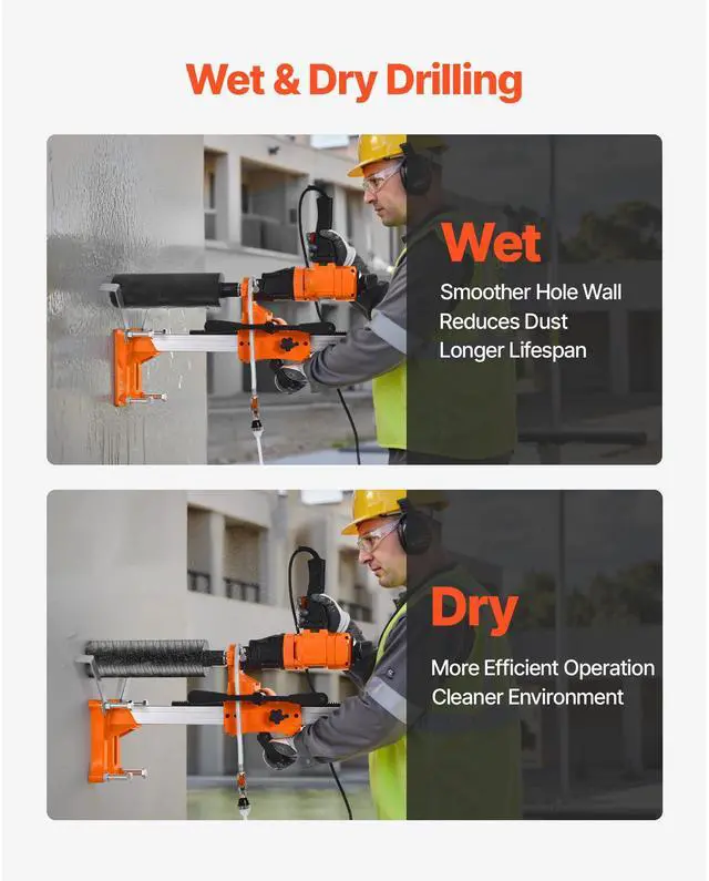 No-Load Power: 700W,Stroke: 15.7 in/400 mm,Brick Drilling Capacity: Max 8 in/200 mm,Concrete Drilling Capacity: Max 3.1 in/80 mm,Output Shaft Size: UNC1 1/4-7 External Thread,Max Load Power: 1800W,Net Weight (Machine Only): 35.9 lbs/16.3 kg (With Stand),Net Weight (Including Accessories): 55.1 lbs/25 kg,Type: Handheld & Stand Combo,Included Drill Bits: 4 Pieces,Max Drill Bit Diameter: 7.9 in/202 mm (No Interference with Stand),Water Inlet Size: Mesh Tube Fitting, OD 0.6 in/16 mm,Item Model Number: Z1Z-CF03-80S,No-Load Speed: 2-Speed Adjustable1075 RPM (1st), 2300 RPM (2nd),Product Dimensions (L x W x H): 14.4 x 8.3 x 31.7 in/365 x 210 x 805 mm