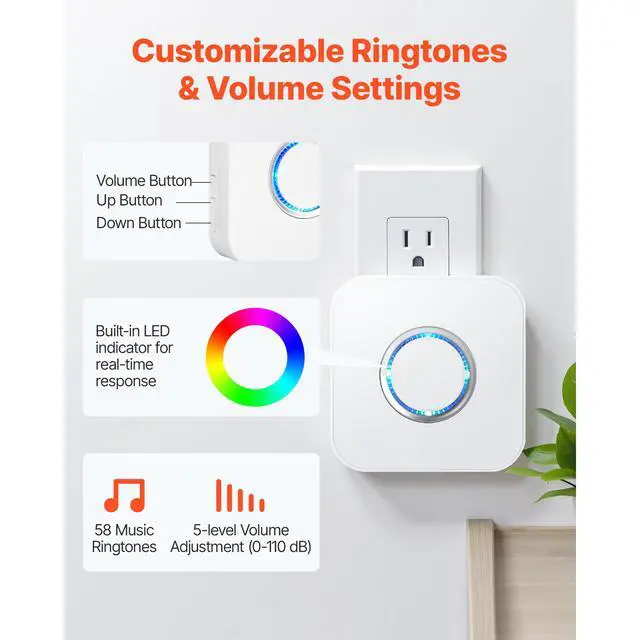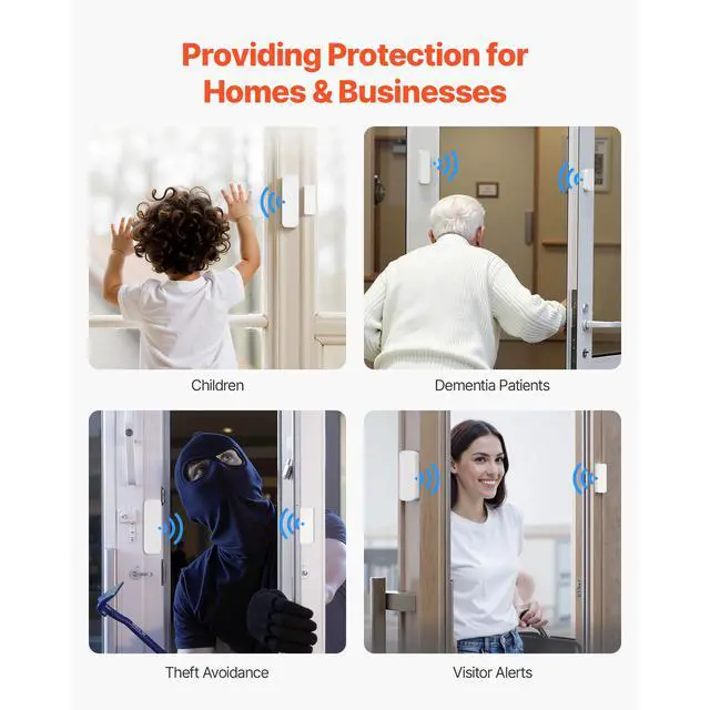 VEVOR Door Chime 58 Chimes 5-Level Volume Wireless Door Alarm Contact Sensor