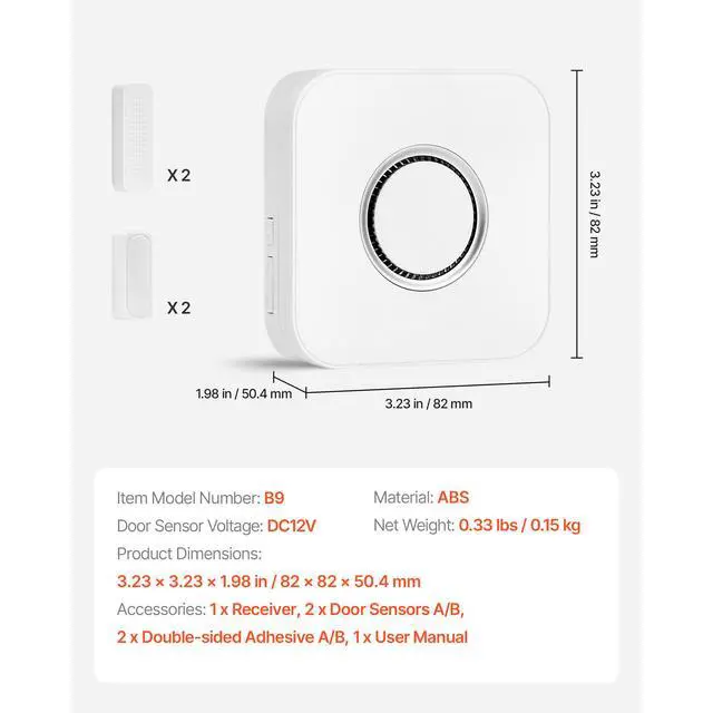 Door Sensor Voltage: DC12V 23A,Item Model Number: B9,Material: ABS,Product Dimensions: 3.23 x 3.23 x 1.98 in / 82 x 82 x 50.4 mm,Net Weight: 0.33 lbs / 0.15 kg