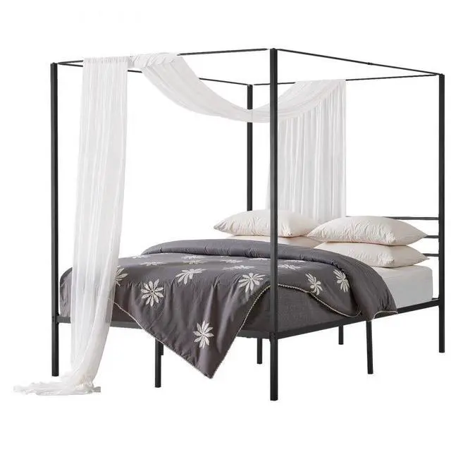 VEVOR Queen Size Canopy Bed Frame Metal Canopy Bed with Four Posters Black