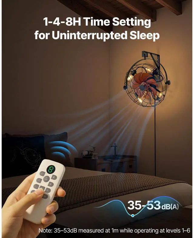 21 Inch Wall Mounted Fan with Light Remote 6 Speed E26 Socket No Bulb